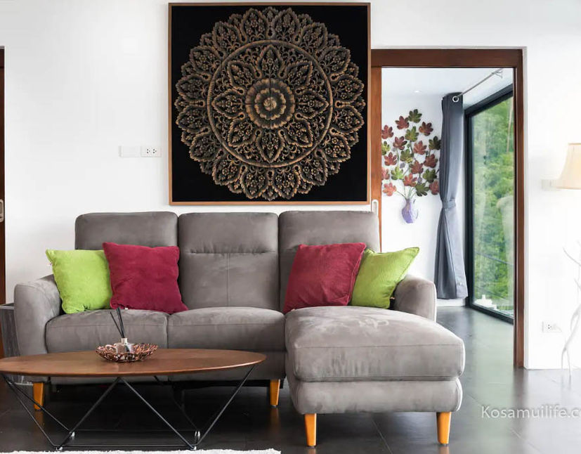The space The apartment offers sea view and coconut grove on the south bay of Lamai Beach, as well as an ideal layout. Located in a quiet and green environment, approximately 5-10 minutes driving from the beach and the city center of Lamai, it is the perfect residence for a short, medium, or long stay. The apartment features a living space with a living room and an open kitchen, access to a terrace with a private pool, 2 bedrooms with seaview with en-suite bathroom.